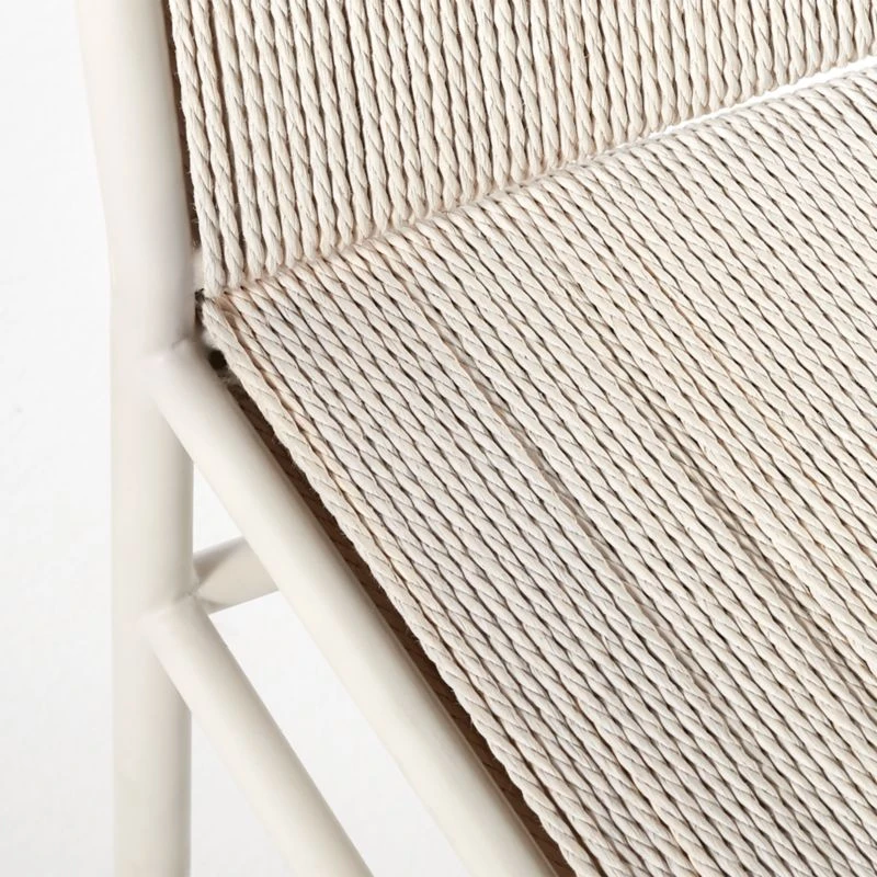 Ivory rope bar stool by Kara Mann sport a rectilinear profile and monochromatic style. “To me, they’re not pretentious. They’re so simple, they fit anywhere,” Kara says. “There’s an aging quality about rope. It should feel lived-in, like a good leather jacket. The French feet are pretty cool, too.” CB2 exclusive.