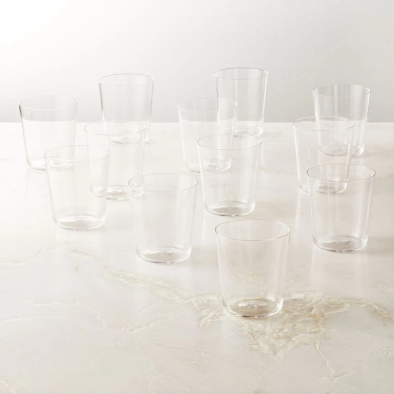Clear acrylic makes for a stylish yet sturdy glass with soft, round base and straight sides. CB2 exclusive.