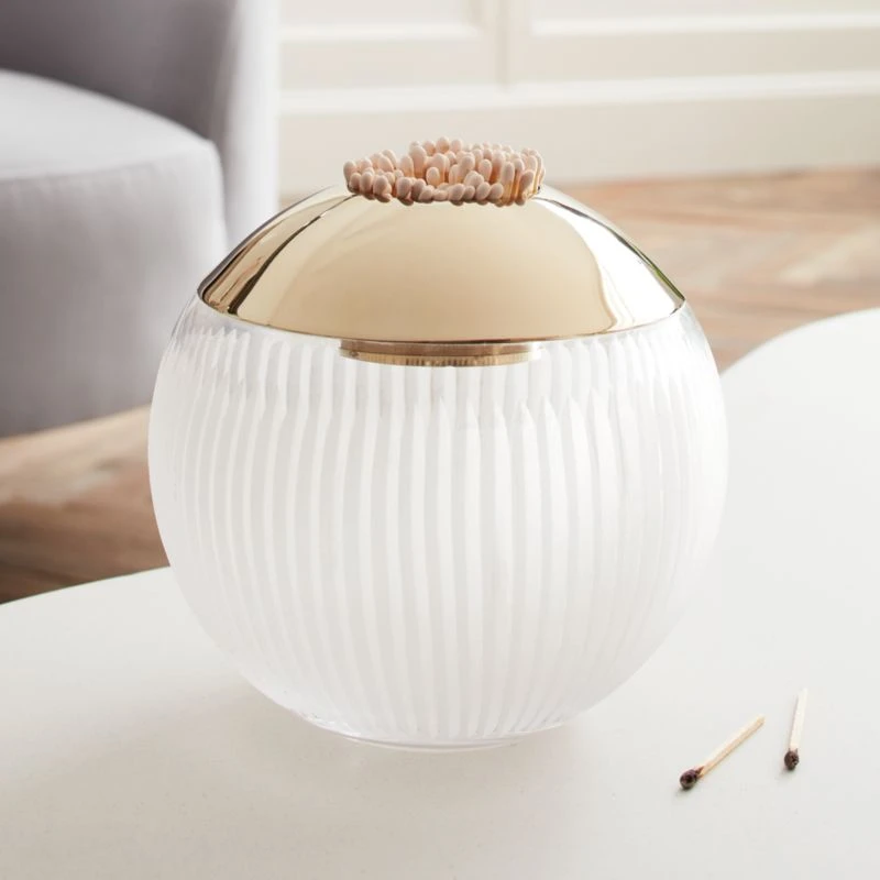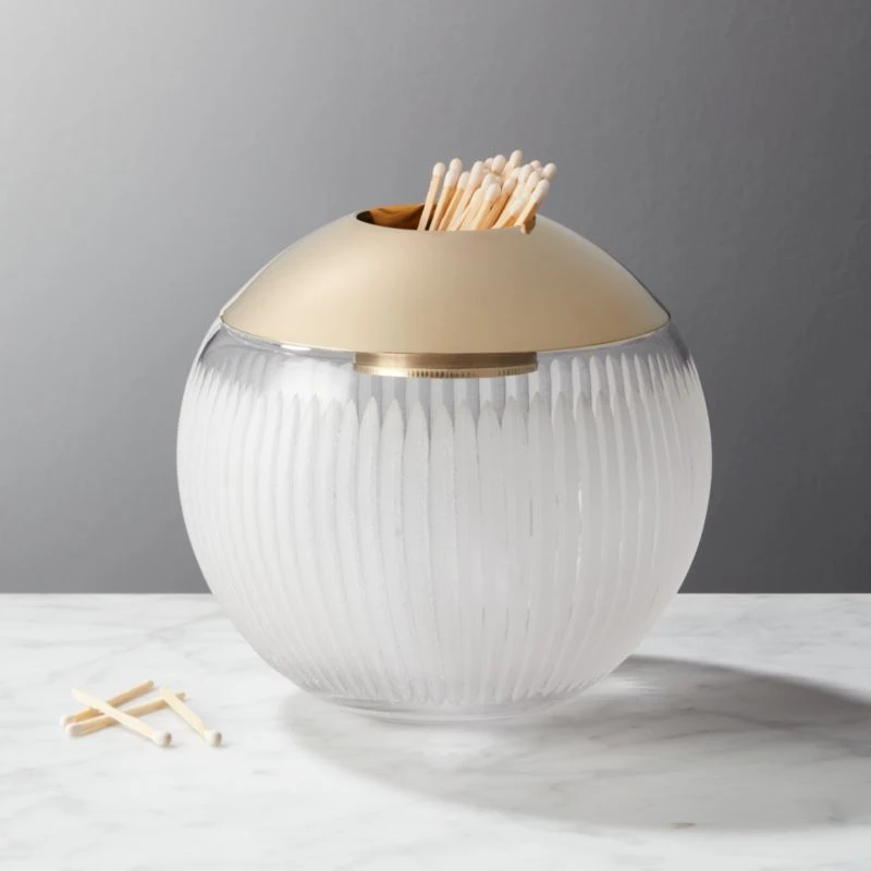 Glass and brass-finished stainless steel match striker by goop is an elegant addition to any mantle or coffee table. Store strike-anywhere matches in the brass-finished lid and ignite them on the base’s rough glass etchings. A chic piece you never knew you needed, we also love it as a hostess gift. CB2 exclusive.