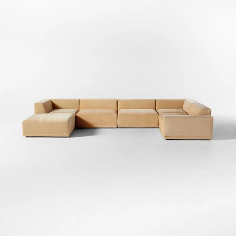 Faible 6-Piece U-Shaped Wheat Performance Velvet Sectional Sofa with Right Arm 184″Wx46″Dx29″H