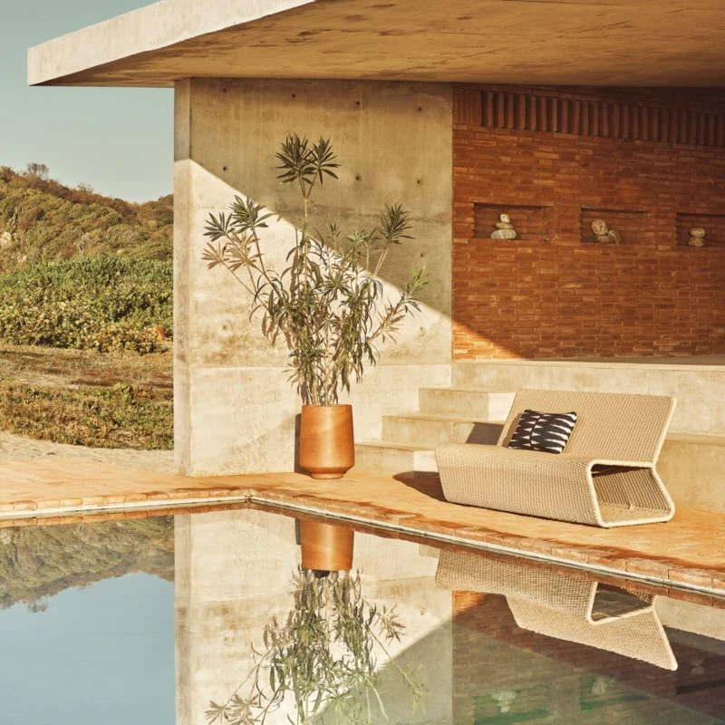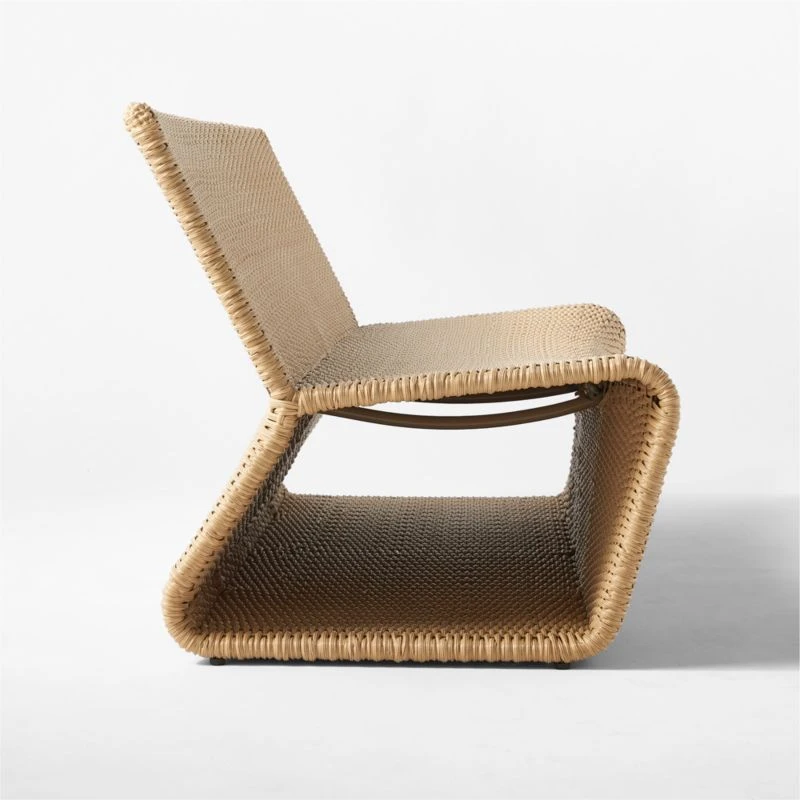 Showcasing a vintage silhouette and uninterrupted wicker detail, VUUE’s outdoor bench is made for lounging. Designed to mimic woven banana leaf, weather-resistant resin rattan is softer and more durable than its natural counterpart. With or without a cushion, the tighter weave provides comfort for two. CB2 exclusive.