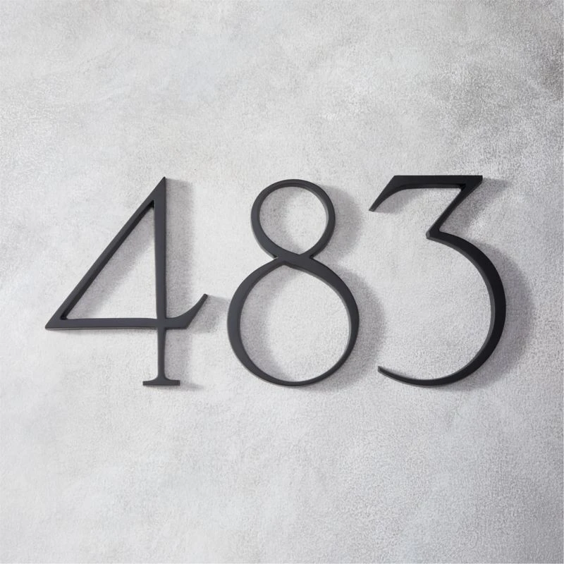 Solid brass house number adds a touch of sophistication in a modern serif font designed at Lineto, a type foundry based in Switzerland. CB2 exclusive.