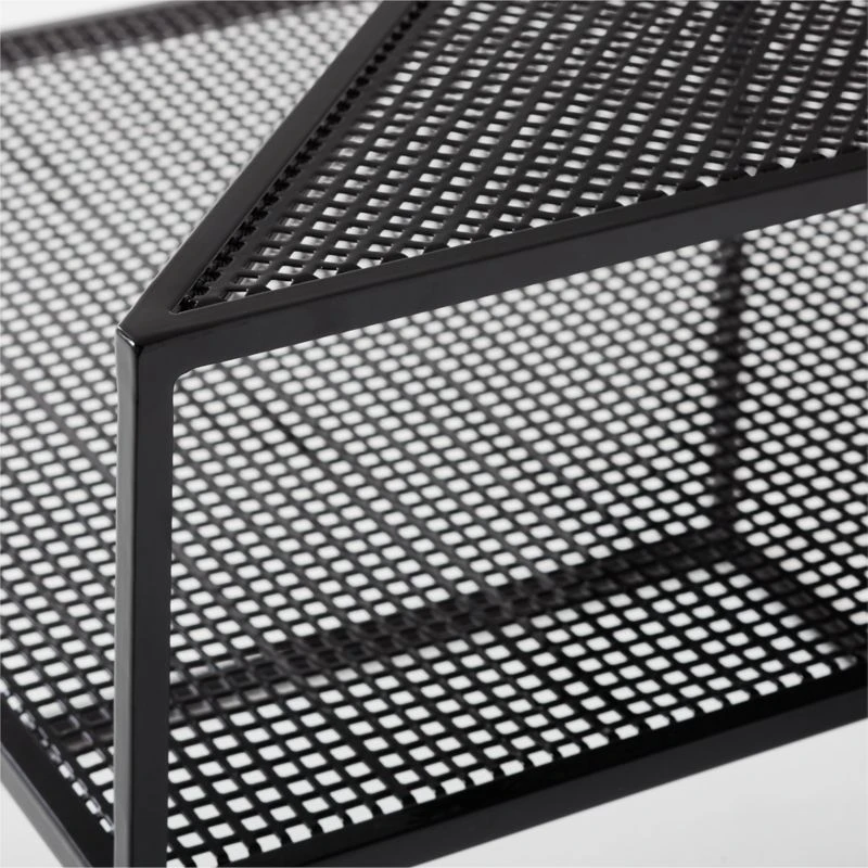 Nicholas Obeid’s black side table finds beauty in simplicity. The angled tiers are finished with a high-gloss coating, providing an unexpected layer to this industrial inspired piece. Perforated mesh provides plenty of space while retaining the impression of lightness. CB2 exclusive.