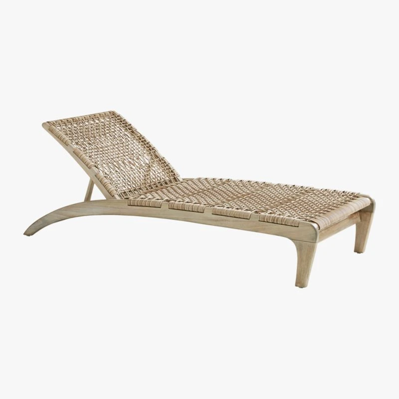 Grey-washed teak wood and chunky faux rattan lay out a beachy lounger that worships the sun. Jannis Ellenberger’s reclining design is perfect for basking, reading and relaxing. Pair with the headrest for added comfort. Learn about Jannis Ellenberger on our blog. CB2 exclusive.