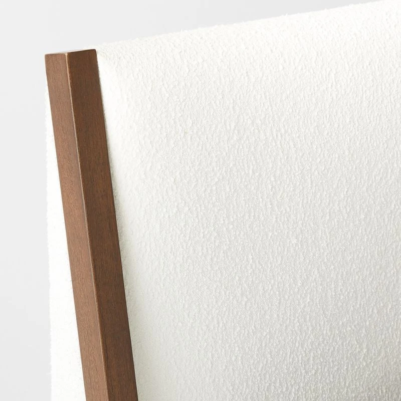 Fully upholstered in a textured micro boucle, Brett Beldock’s queen bed offers a comfortable sleep in total luxury. Solid oak certified sustainable by the Forest Stewardship Council ® outlines the bed with clean lines in organic contrast to the tailored upholstery. CB2 exclusive.