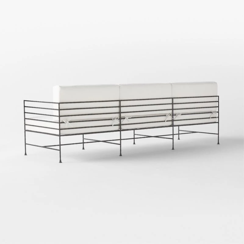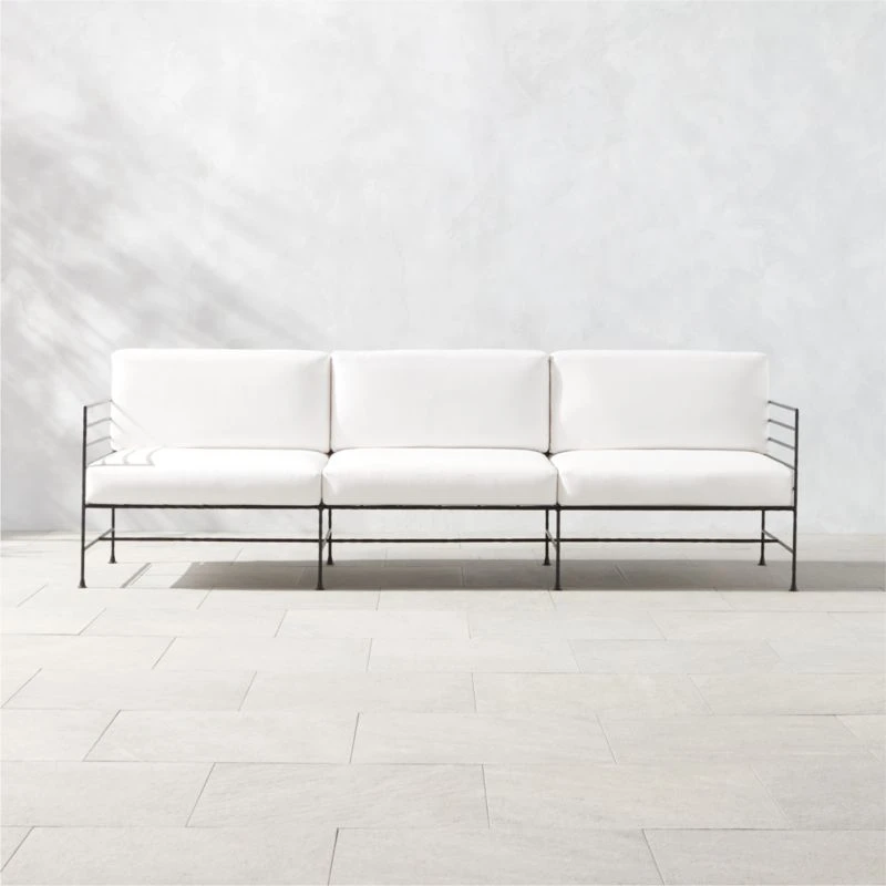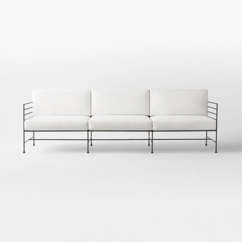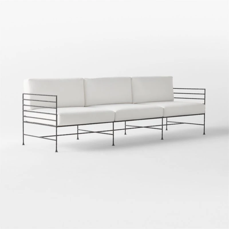 Marteau Black Iron Outdoor Sofa with White Sunbrella® Cushions 100″Wx29.5″Dx39″H
