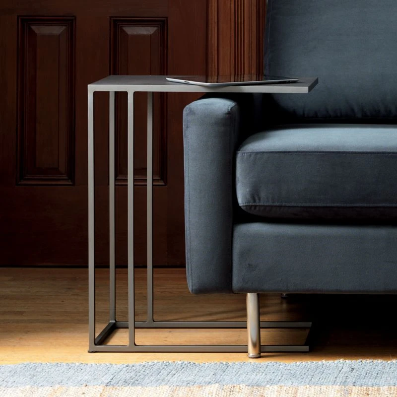 Cool c-table that pulls right up to the sofa or bed is welded heavy-duty but looks light on its feet. Industrial iron with raw antiqued finish. mill c table is a CB2 exclusive.