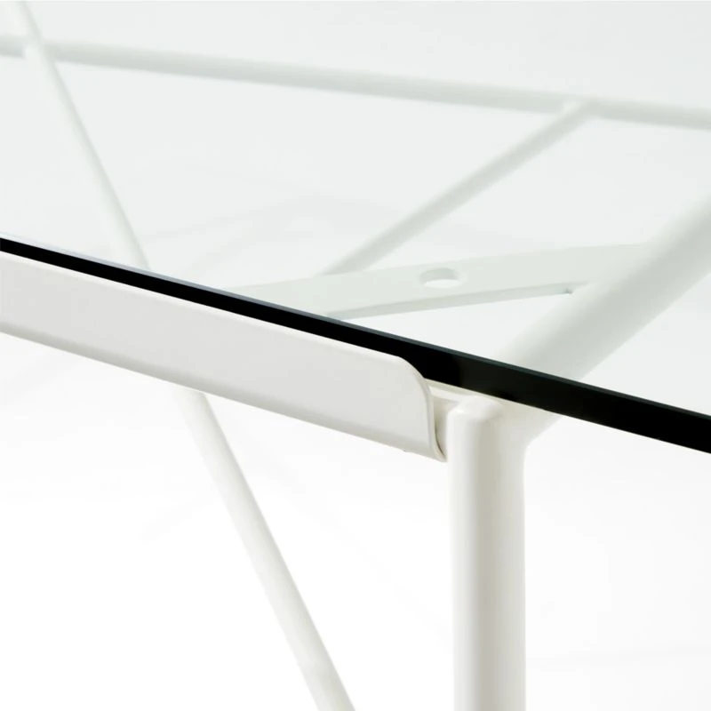 First introduced as part of the Aerial Dining Group in Paul McCobb’s 1952 Pavilion Collection, this dining table was designed to be durable, beautiful and easy to care for. The modern design of the table’s satin ivory iron frame can be seen through the tempered glass top. The Pavilion Collection was featured in the June 1953 issue of House & Garden magazine in an original McCobb illustration, yet doesn’t feel at all out of place in a modern outdoor space or even an indoor dining room. CB2 exclusive.