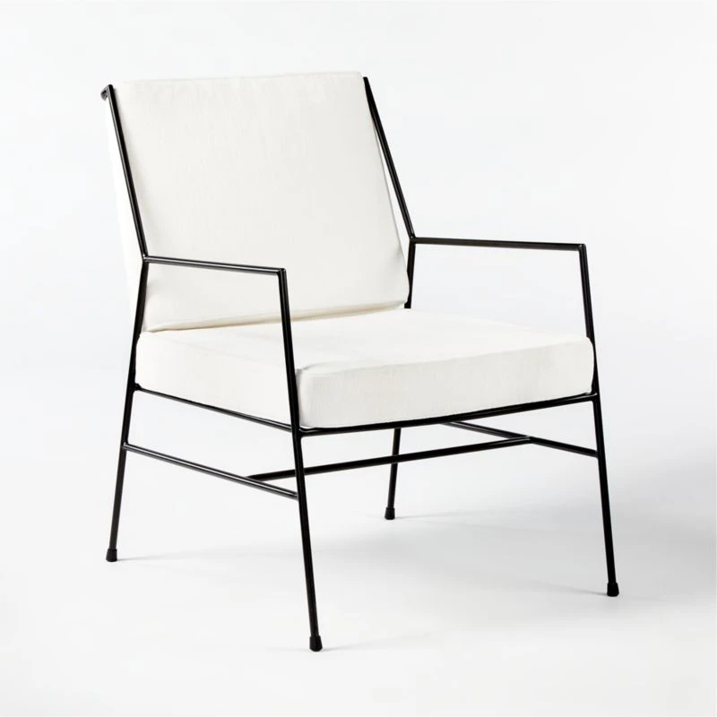 First introduced as part of Paul McCobb’s 1952 Pavilion Collection, outdoor lounge chair was designed to be durable, beautiful and easy to care for. Solid iron frame will stand both the elements and the test of time, as will the reversible cushion in ivory Sunbrella fabric. The Pavilion Collection was featured in the June 1953 issue of House & Garden magazine in an original McCobb illustration, yet doesn’t feel at all out of place in a modern outdoor space or even an indoor living room. CB2 exclusive.