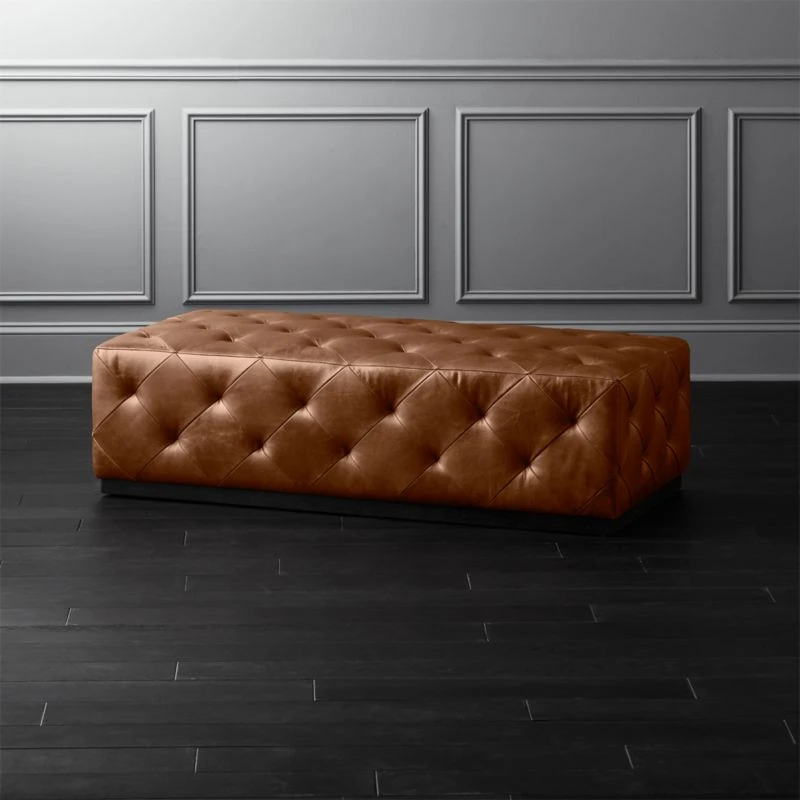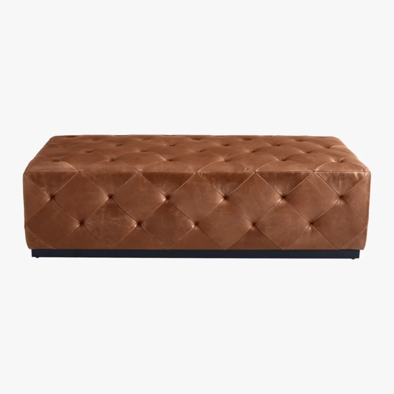 Saddle Leather Tufted Ottoman. 56″Wx26″Dx16″H