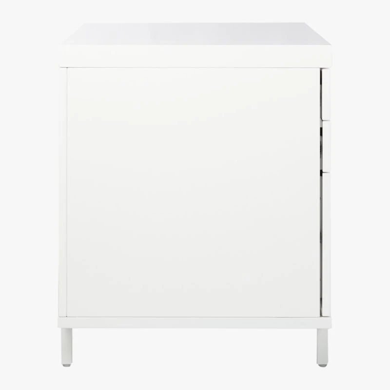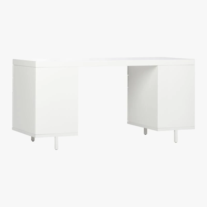 Minimalism goes to work in this clean modular desk. Engineered wood desktop lays out a pristine workspace in glossy white. Slim, powdercoated aluminum frame with hidden hardware hosts two sets of drawers that stash away anything that distracts from this spotless beauty. Learn about Donna Piacenza on our blog. CB2 exclusive.